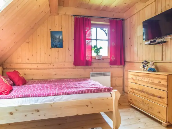 Domki Pod Giewontem Domki I Apartamenty Do Wynajecia W Zakopanem Domek Mysliwski Sypialnia Z Tapeta W Kratke